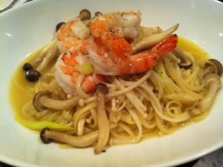 さらに、最後にはこちらのキノコとエビの生パスタ!