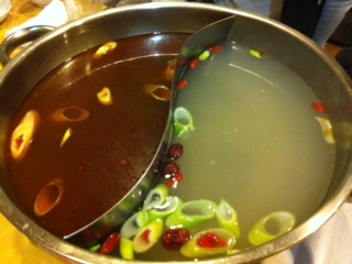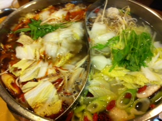 2種類の鍋を同時に味わえるのですが、この火鍋がおいしんですよね〜。