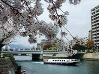 平和公園の桜は川のほとりをぐる〜っとおおっていますので、かなり見栄えがすばらしいです。