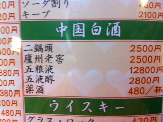 ちなみに、この12800円の五粮液とは、五種類の穀物から作っているんだそうです。