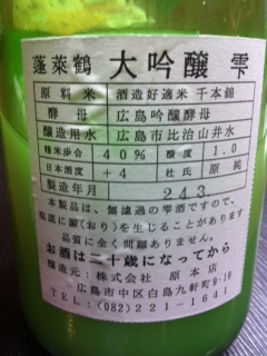 広島に出張でお越しになられて蓬莱鶴(ホウライツル)を飲みたいと同僚の方に