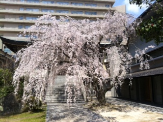 近所にあります普門寺というお寺さんの中に有名なしだれ桜があるのですが、