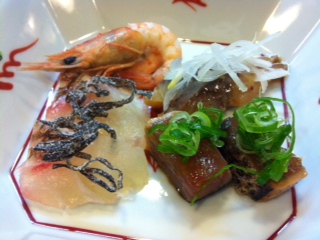 え?まずはボリュームに驚きました。そして、鯛の昆布しめ、あじ、小エビ、かつお!