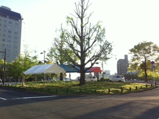 その準備がパークサイドホテル広島から徒歩3分ほどの平和大通りで始まっていました。