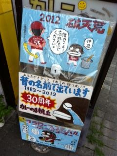 今日はお昼ご飯にこちらのお店に行ってきました!カレーの桃丘さんです。予備校時代から通い始めてはや17年も通い続けています。かなり時間がたったんですね〜。お店の前の看板もここ数年で登場し始めたのですが、かなりおもしろい!楽しく見ています。