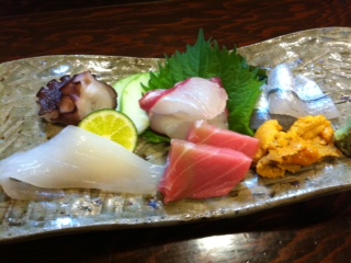 刺身はこの日も盛り合わせでいただきました!まぐろはもちろんですが、うに、イカ、タコ、鯛、サヨリまで!もうこの時点で感動の嵐です。