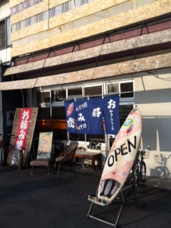 大田川沿いに宇宙焼の看板を出してる店がありますよ