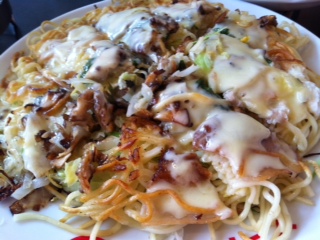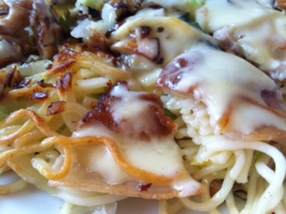 こちらはチーズのせ!チーズをのせても、ほんとふわっとさらっとお好み焼きがいただけるので、体にとってもやさいい!