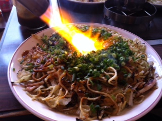 さて、今回ご紹介いたしますのは、、、こちら!広島の名物お好み焼きです!お好み焼きはお好み焼きでも広島市内で食べるお好み焼きとは違って、広島県の第二の都市福山でいただくお好み焼きですね〜。いわゆる府中焼きです。