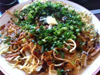 私がお願いしたのは、横山スペシャル!こちらは初めて見ました!府中焼きの特徴としては豚肉のかわりにミンチが入るのですが、こちらはミンチも豚肉も入っています!