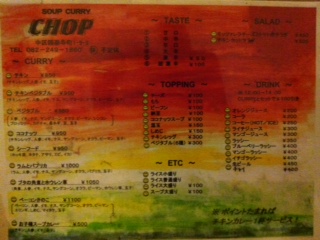 さて、昨日ご紹介いたしましたスープカレーのCHOPさんですが、お昼においしいチキンスープカレーをいただいた余波がきまして、、、、なんと夜にもう一度再訪してしまいました!お店の方は気づいていらっしゃったようですが、、、、(笑)
