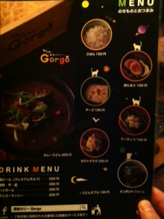 正解は、、、カレーうどんのお店の入り口を案内されています。お店の名前は深夜カリー Gorgo!なんと夜の21時から開店するお店なんです。以前どこかのお店で紹介していただいたのですが、どこにあるのかがわからず、あきらめていました。今回はこのお店に行こう!と計画して調べていってきました。