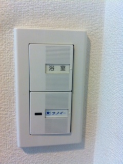 お部屋に入られてすぐのところにあります浴室のスイッチの下の部分にナノイースイッチを設けておりますので、そちらを押していただくとスイッチが赤く光ります。その状態でオンの状態になっています。