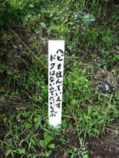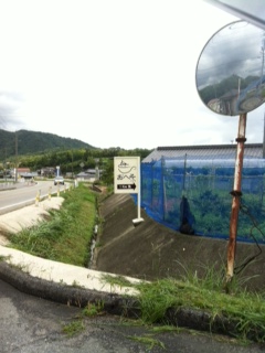 おへそカフェのすぐ目の前にある駐車場に車をとめて、お店に歩いて1分ほどです。途中にへびがでます!の看板が!でも毒はないので安心なんだそうです。私は最初に来たときにこの看板にびびってしまいました。(⌒〜⌒)