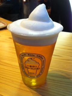 1杯700円の一番搾りフローズン生!おおお!泡がほんとに立ってる!一口つけてみると、、、、おおおお!とってもひんやり!シャーベットみたいになっています。これはすごいな〜〜!