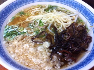 お、おいしい!和風中華そばおいしい!花いちもんめさんのお味ににています!でも母校のかけそばの味よりははるかにおいしかった〜〜!(⌒〜⌒)