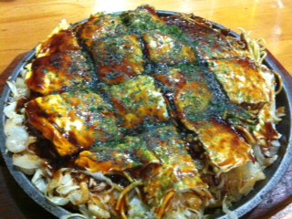 そして、登場しました!こちらがよっくんのお好み焼きです!おおお!ボリュームがありますね!一口いただいてみると、、、うわ!う、う、うまい!これはうまいです!お好み焼きをはしでつまんで口に運ぶ時になんだか不思議と弾力を感じました。そばが特製なんでしょうか?いつも食べているそばとはちょっと違っていますね!