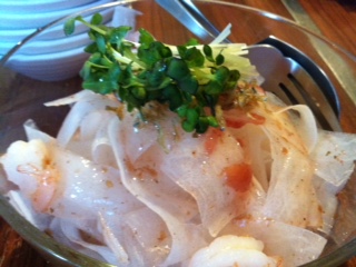 つづいてサラダは大根ですが、切り方が変わっていますね!