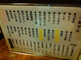まずはビールをいただきながら、おでんのメニューを眺めます。今回はいつもと違うものを頼んでみよう!ということで、
