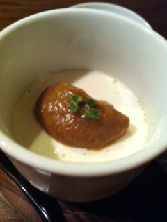 なんと、お豆腐の上に焼き茄子醤油というペースト状の、味噌のようなものがかかっていました。確かに焼き茄子の風味!これは美味!