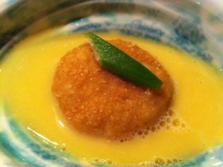 里芋に穴子などをまぜてあえたものを衣につけて揚げてたものです。これが、、、めちゃくちゃおいしい!おまかせコースに登場するようですよ〜!