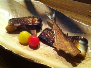 さんまの半身に自家製の肝醤油をぬりながら丁寧に焼いていらっしゃるんだと思いますが、この外側の絶妙なパリッと感と内側のすんばらしいやわらかな食感のコントラストがたまりません。またこの肝醤油の芳醇な香りと焼いて香ばしさがプラスされている風味がほんと贅沢な感じを醸し出しています。