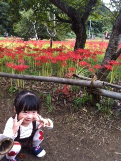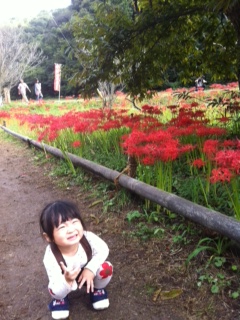 娘も真っ赤なひがんばなをみて、
