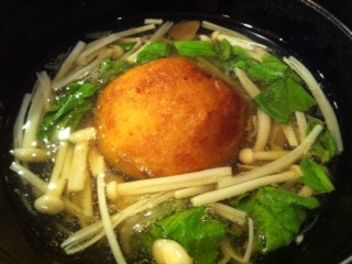 最後はれんこん餅のきのこあんかけ!体があったまります!