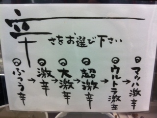 ということで、和田党さんで先日いただいた辛みそらーめんの大激辛でもたべようとおもっていたら、、、、あれ?なんだかメニューに、、、、辛さの表が登場していました。先日はなかったような気がするのですが、、、