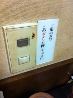 個室はちょっと奥になるので、部屋には呼び鈴が壁についています。このボタンを押すと、お店の人がきてくださいます。