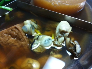 おでんのほうもかなりたくさんいただいちゃいました!やはりこの時期は牡蠣ですよね!牡蠣!私はこの牡蠣を春菊と一緒にくるんでいただくのが大好物なんです。今日もやっぱりおいしかったですね〜!