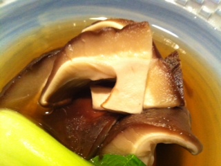 登場したしいたけを一口いただくと、、、、た、たまらない!しいたけのお肉をたべているかのような厚みです!食感もすばらしく、またお出汁がシンプルでよくあいます。