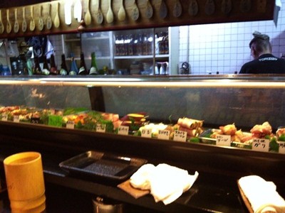 カウンターにすわると、すぐ目の前に大きなショーケースがあり、そこにいろいろな焼鳥がならんでいます。みたことがないものもありました。