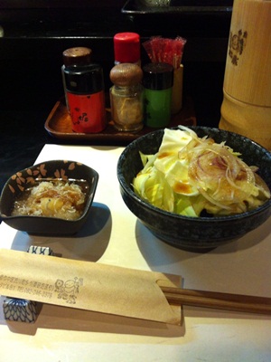 キャベツと大根おろしが最初の基本セットのようです。