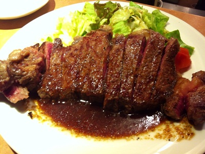 登場したサーロインステーキ、、、、これまたおいしい〜!ほどよくかみごたえがあり、脂もつよくないのでとっても食べやすい。若い人じゃないお客様が多いのもそれが一因だとおもわれます。