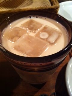 まずはチャカティークのキャラメルミルクチャイの牛乳割りで乾杯!