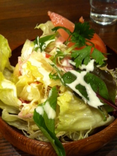まずはイタリアンサラダ。昔ながらのイタリアンサラダです。小さいころよく食べていた味がしました。中にチーズがこっそりはいっているところもいいですし、セロリも入っているのがうれしかったですね!本格派のサラミまではいっていました!