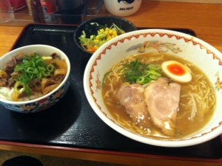登場したラーメン、結構おいしんですよ〜!牛丼もボリューム満点でおいしかったです!