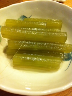 ブロッコリーの茎です。これらはまずいつものセットとしていただいています。これがほんとおいしんですよね〜。生ビールはなくて、瓶ビールでいただくところもなんか懐かしくていいですよね〜。