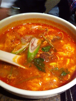 テグタンクッパ、、、見た目が恐ろしいほど赤いです!かなり辛そう!一口いただくと、、、おお!辛い!かなり辛い!でもおいしい〜〜〜!クッパがおいしいお店はいいお店という印象がありますね!