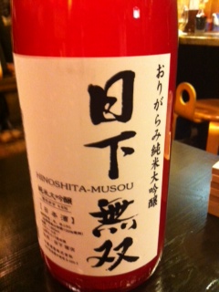 お隣の山口県のお酒です、村重酒造 日下無双 おりがらみ純米大吟醸。日下無双は何度か飲んだことありますが、このおりがらみは初めてでした!