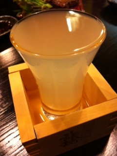 ひえーーーー!しかもグラスになみなみ、そして枡にこぼしていただいて、、、、おりがらみですので、この白っぽさがいいですね。でもにごりとは違ってすっきり飲めそうです。一口いただくと、、、、でたーーー!おいしい〜〜〜〜!まさかこんな幻のお酒がのめるなんて、、、、