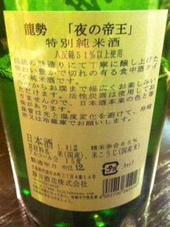 つづいて竹原にあります藤井酒造さんのお酒、その名も、、、夜の帝王をいただきました!これまた初めていただくお酒です。おおおお!金色に輝くお酒を一口いただくと、、、うんうん!風味豊か〜〜〜!これぞ日本酒!ですね!