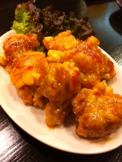そして、唐揚げのスイートチリソースをおねがいすると、、、これまたおいすぃ〜〜〜!たまりませんね。280円で唐揚げスイートチリソースがたっぷりでてくるんですから!