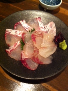 お刺身が登場!まずはひらめと鯛の昆布〆です。ひらめはしっかり〆てあり、鯛はひらめよりは軽く〆てありました。おいしい〜〜〜!