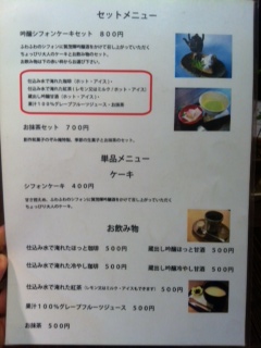席に着くととてもやさしい気遣いのある店員さんがメニューを持ってきてくださいました。迷わずおすすめの吟醸シフォンケーキを!そう、吟醸ということから、、、、日本酒をかけていただくんですね!