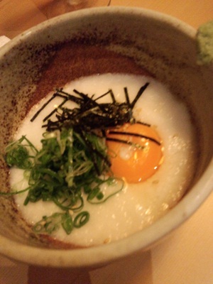 まずは山芋をいただきました。この山芋、、、おそらくいい山芋をつかっていらっしゃるようです。粘り気がすごくて、一口いただくと口の周りがぴりぴりと。普通の山芋だとそんなことにはならないのですが、たまにすごい自然薯をもらうとなるんですよね〜。いい感覚です。