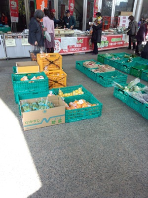 広島県内の新鮮な野菜や特産品がこうして購入できるのっていいことですね〜!張り紙をよくみると、今年度の産直市は昨日で終了したそうです。