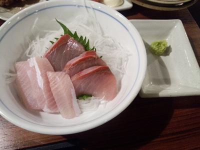 まずは本日のおすすめにありました天然ブリのお刺身!このお刺身がこれまたおいしいんですよ〜!これでなんと400円!これはお得!