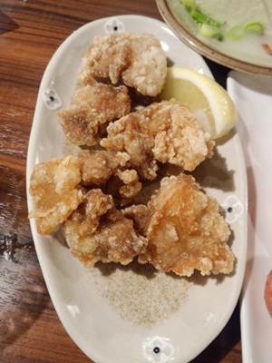 そして唐揚げ!小ぶりに切り分けてあるので、つまみにはちょうどいいですね〜!それで320円です!